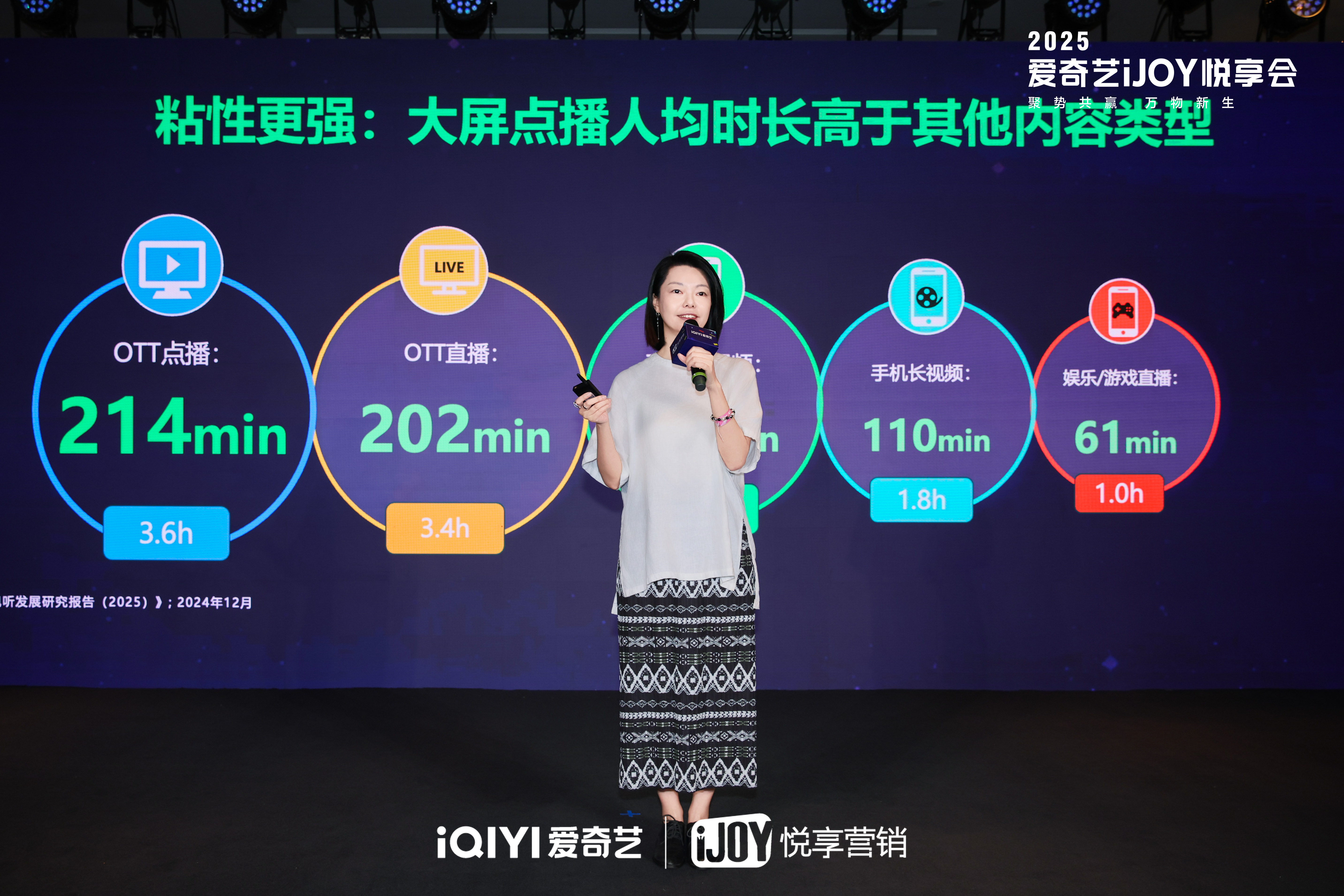在媒介触点碎片化的当下,用户注意力被高度分散,单用户周均使用APP个数已达37个;用户内容消费场景也趋于多样性,郑婷婷提出,在智能大屏场景里,针对独居青年、生活搭子(2口及以上居住场景)、有孩家庭、银发家庭这四种典型场景,同样也有不同的精准化营销策略。