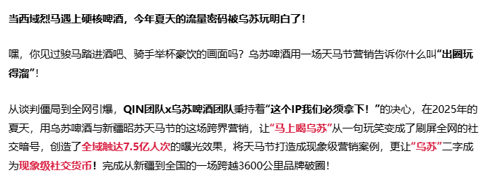 乌苏啤酒×天马节:「马上喝乌苏」成全民暗号?