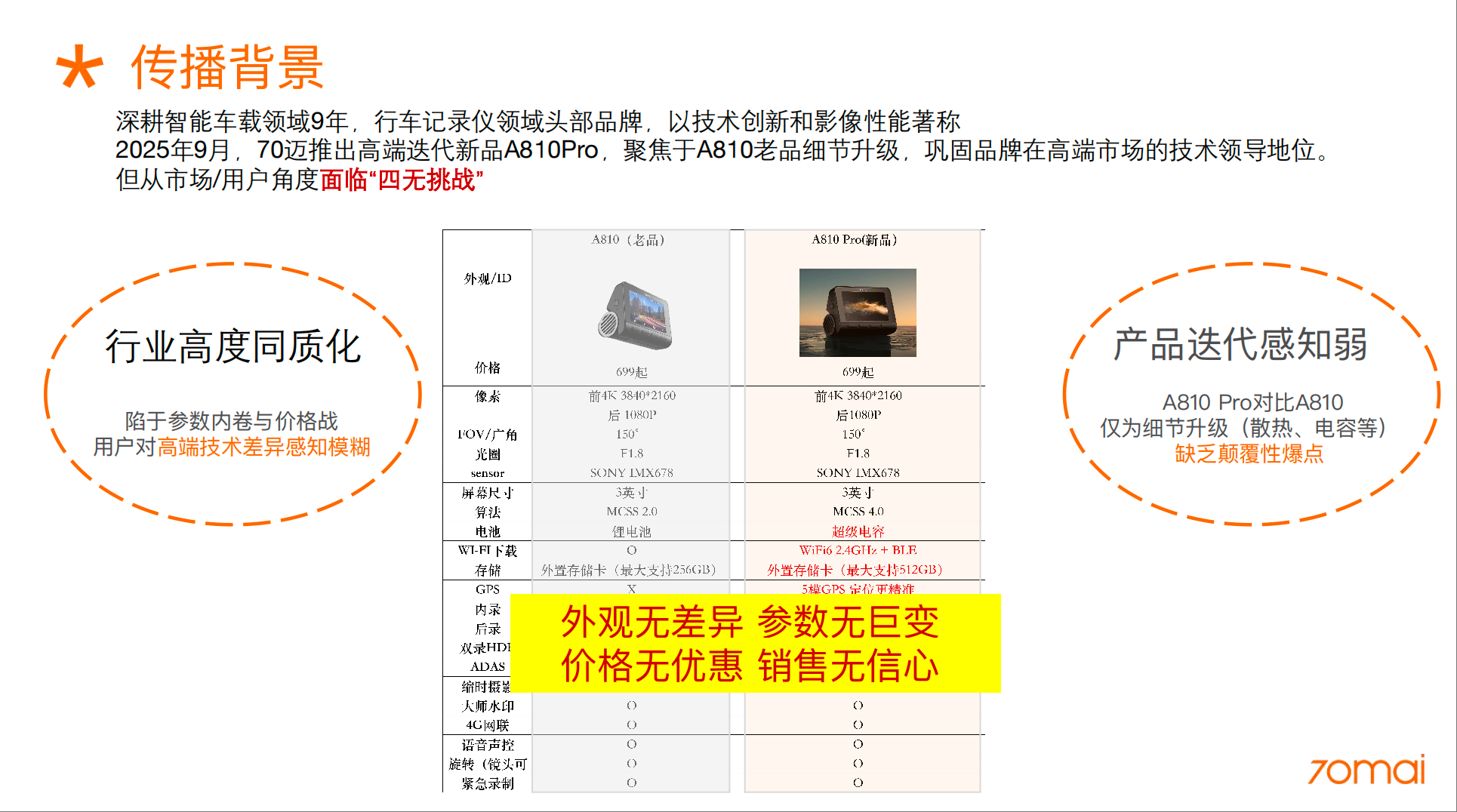 - “四无产品”迭代感知弱:A810Pro属于小幅度升级款(体验细节升级(如散热、电池升级),缺乏颠覆性功能突破