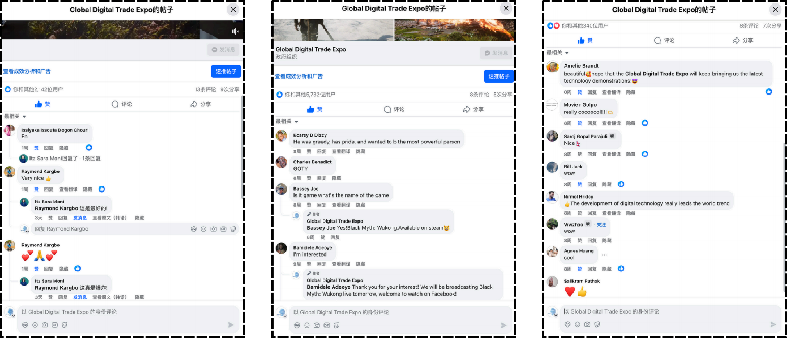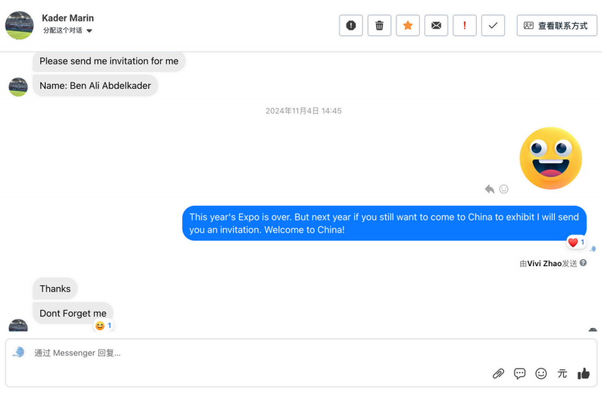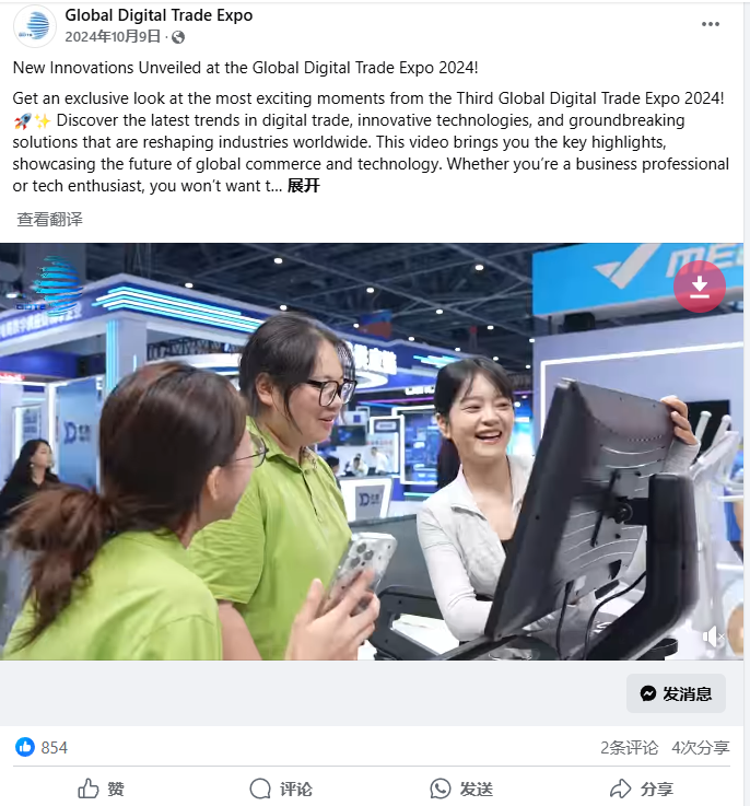 ①通过社交媒体互动,收到大量全球用户的私信,其中明确提出希望下一届数贸会能来到中国参展,社交媒体的方式能够更加“平易近人”触达线上用户,在用户心中种下品牌的种子。