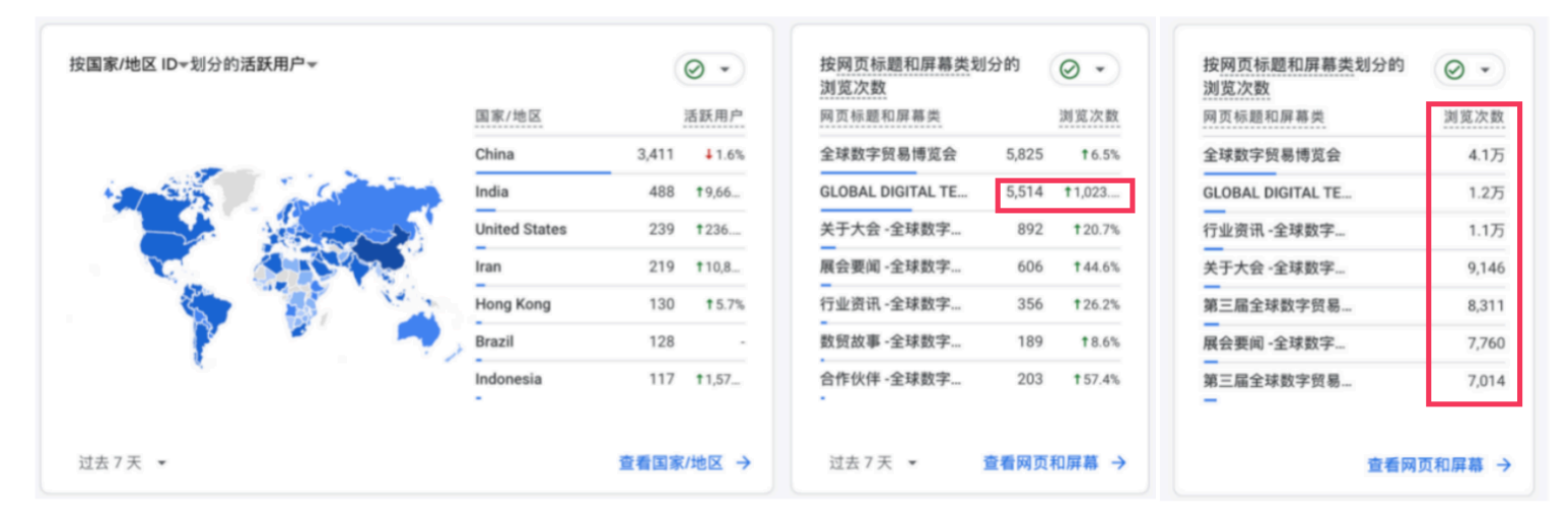 ②在海外目标市场建立了“Global Digital Trade Expo”品牌知名度,获得初步认知。通过精准广告投放和内容营销,提升了品牌曝光量、搜索量及社交媒体提及量,提高了线上讨论度。