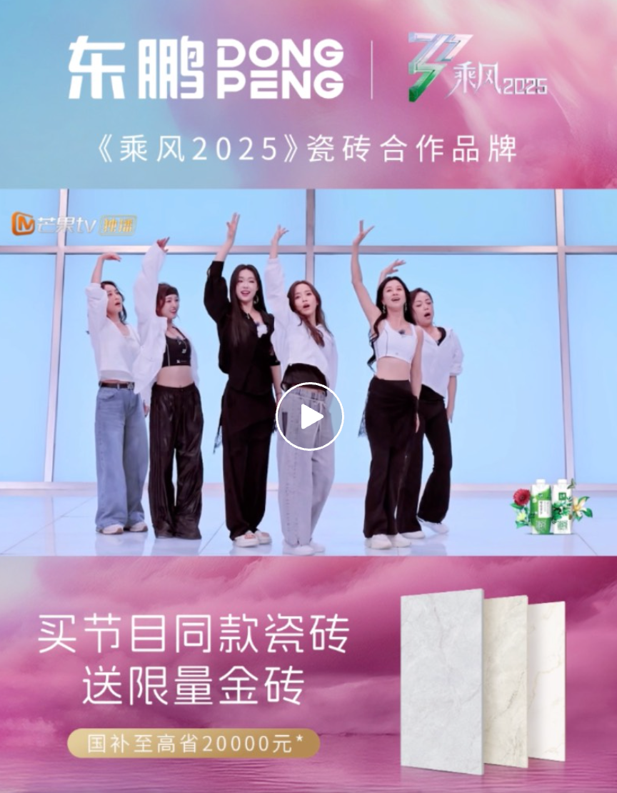 联合《乘风2025》IP,将节目中姐姐们的“多重角色魅力”与微韵石的“天生多面”价值做绑定。通过花字植入/生活场景植入/话题联动,累计曝光 13 亿+,将微韵石系列融入年轻消费者的家装想象!