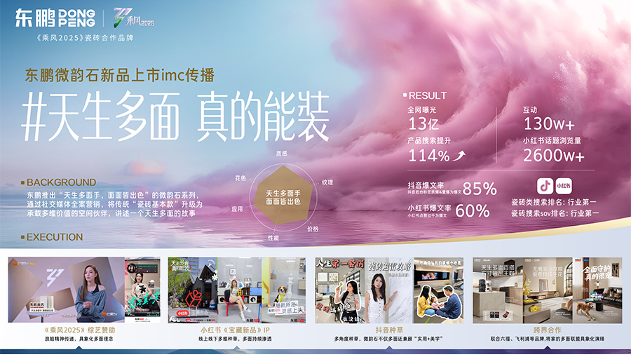 在“既要、又要、还要”的家装消费趋势下, 东鹏瓷砖希望借新品「微韵石」系列上市节点,打造一次真正触达年轻家装人群的整合营销,通过功能与情绪价值并举,让瓷砖转化为“家的情绪容器”,推动品牌从「被看见」到「被选择」。