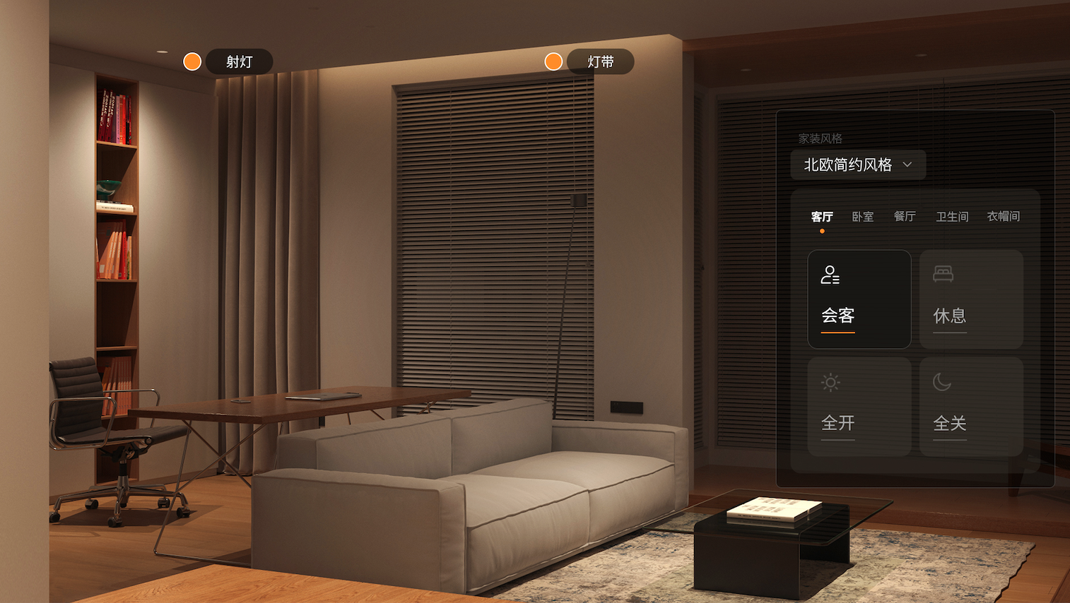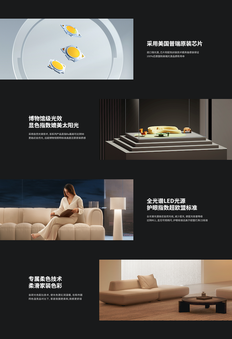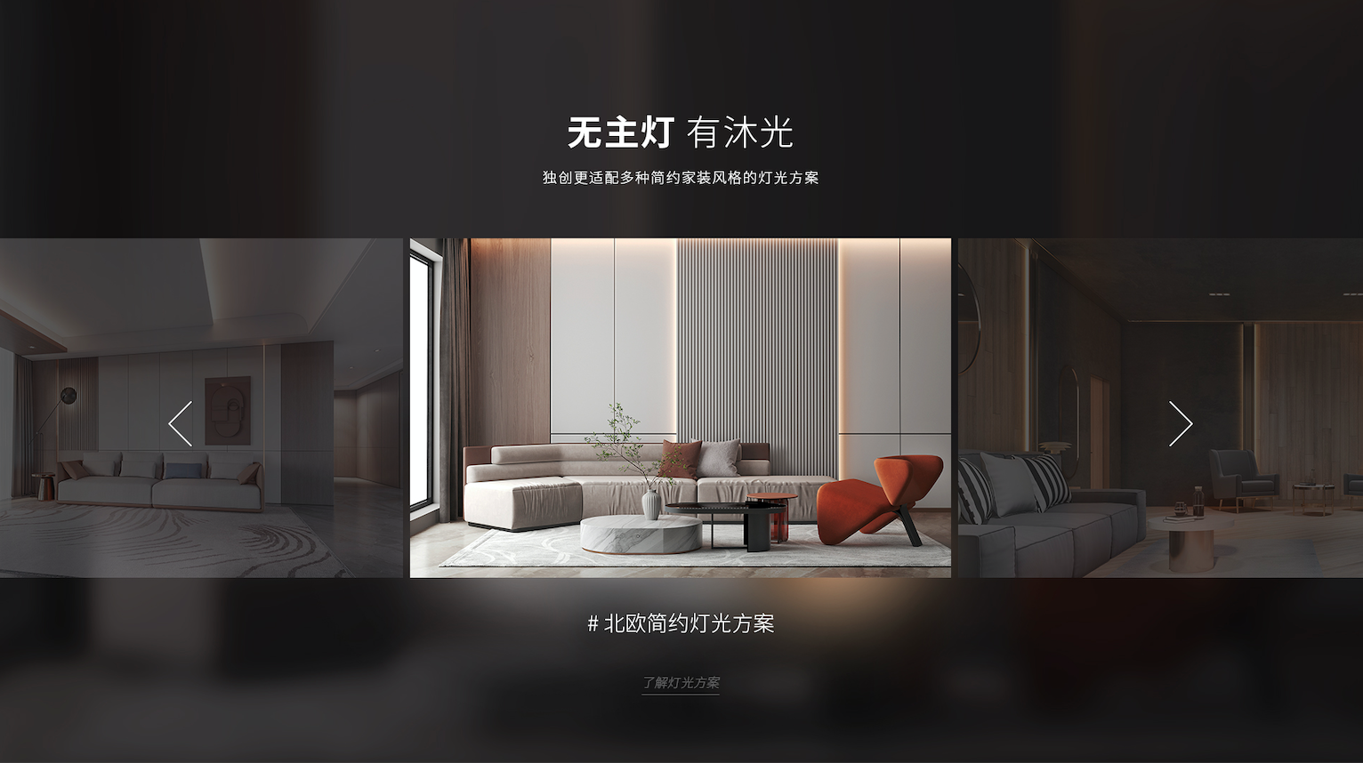 3)在视觉设计中注重细节的处理,例如按钮、表单、图片等元素的样式和交互效果。在产品表达上,更是借助灯光概念图,传达对灯光与空间融合美的理念;