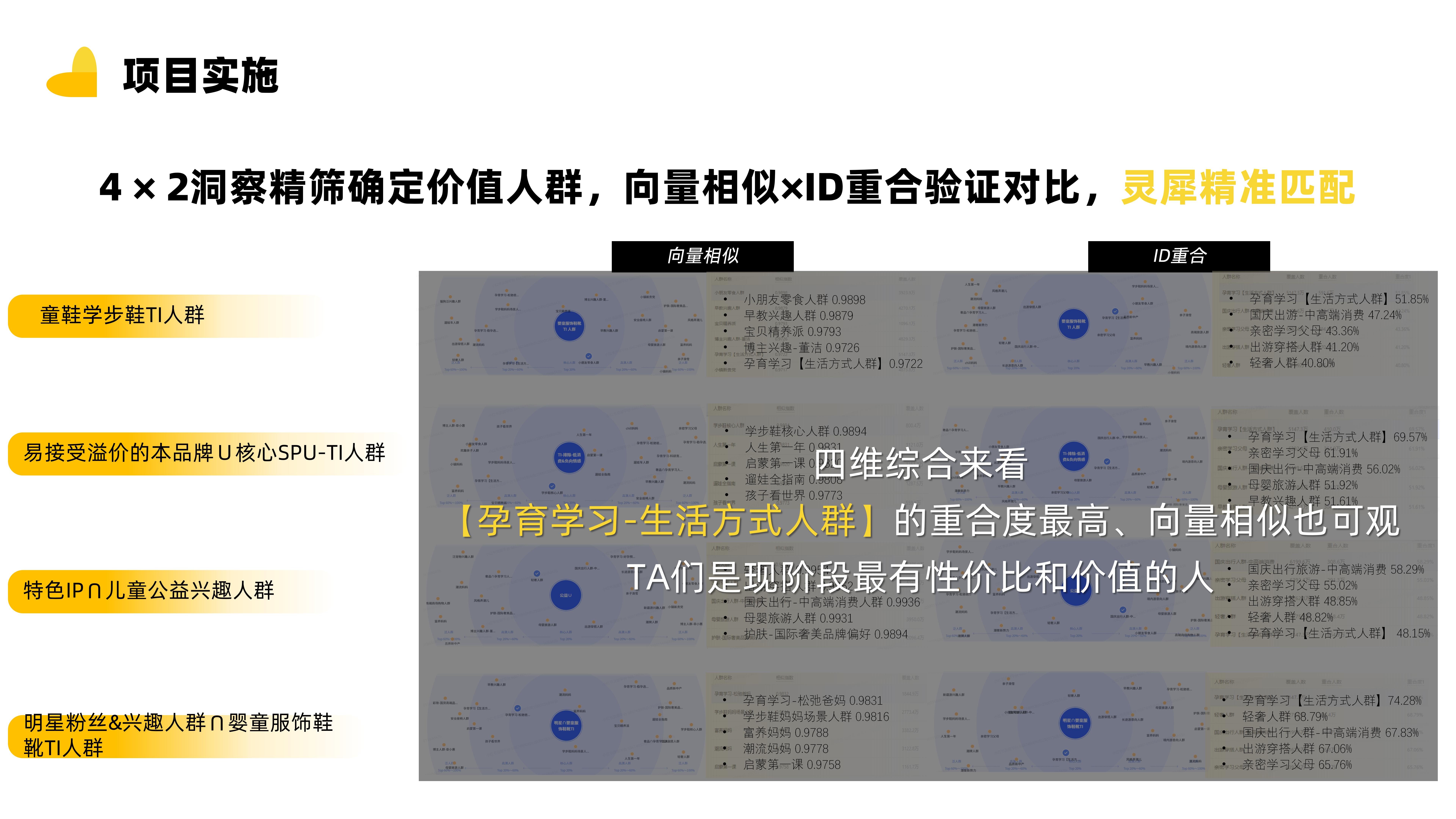 4、借势明星影响力人群: 联动明星吉娜·爱丽丝,触达其粉丝中的精准母婴群体。通过“向量相似”与“ID重合”的交叉验证,最终精准锚定对“孕育学习-生活方式” 具有高度认同的价值人群,他们不仅是母婴用户,更是追求潮流、注重教育与生活品质的“精致妈妈”。