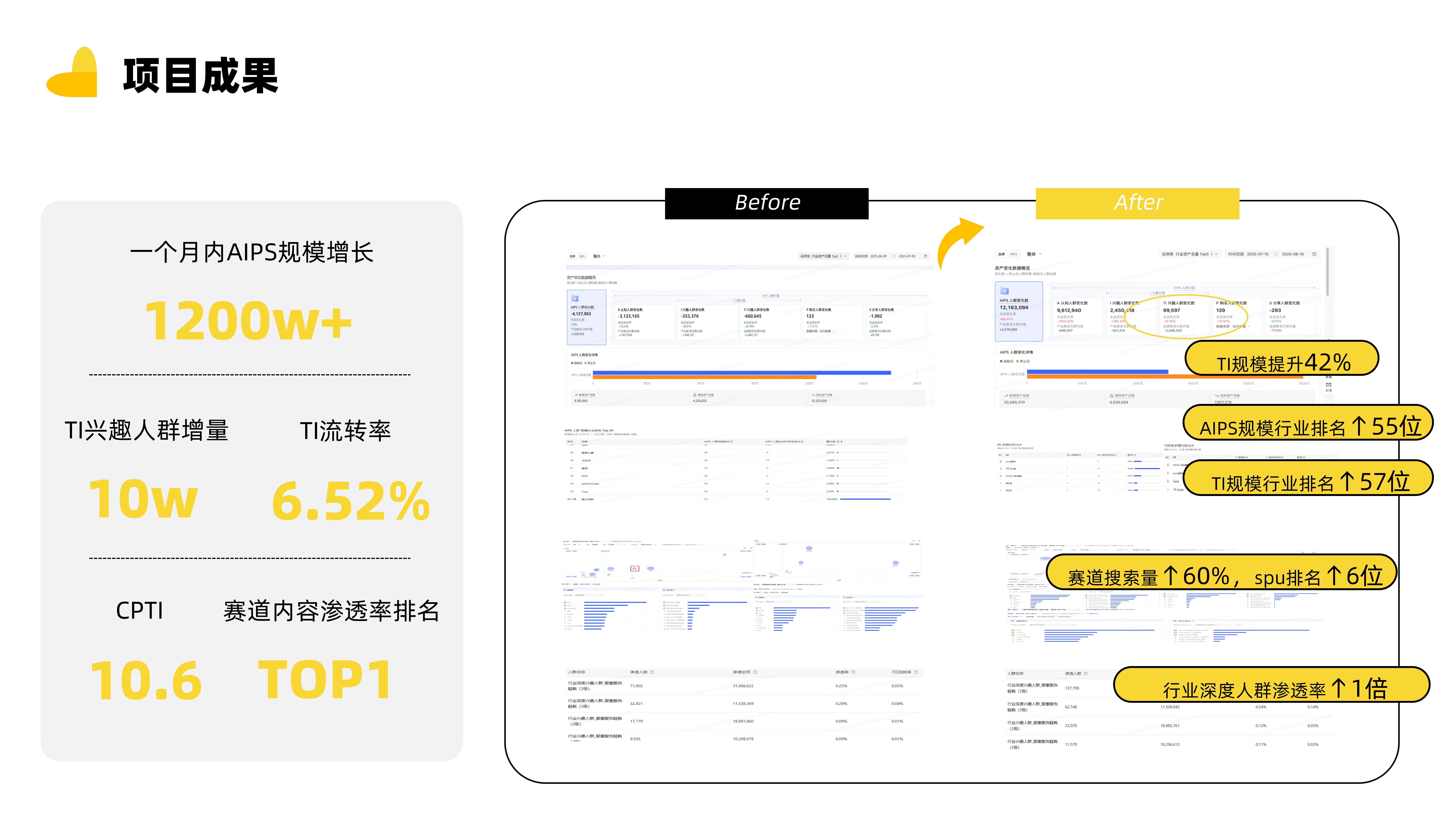 2. 人群破局: 显著扩大高质量兴趣人群(TI)与AIPS人群资产规模,并提升其在目标客群中的渗透率,扭转人群结构不健康的局面。