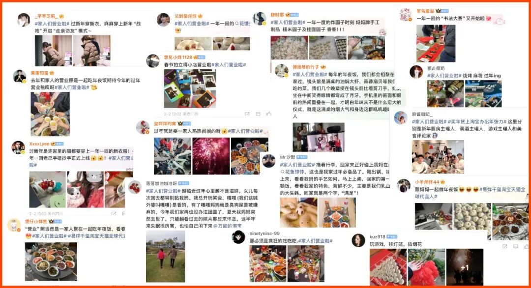 当然,不能纯走温情是不?在视频结尾的UGC,我们再次回归淘宝的春节业务场景“年货、外卖、旅行”,将“家人营业”的温情自然延伸至平台为你守候的“服务营业”。