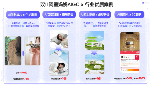 10月15日晚20点,天猫双11预售强势开启,首小时35个品牌成交额破亿,1802个品牌翻倍增长,AI大模型调用超150亿次!阿里妈妈AI产品应用全面爆发,万相台AI无界活跃用户数双位数增长,全场景ROI同比增超双位数,助力10+细分行业成交翻倍。「货品全站推」更是在预售期间助力百万好货成交增长20%ROI同比增长超15%。