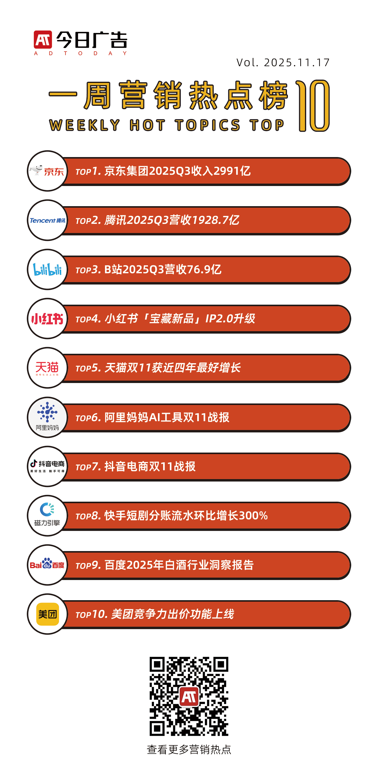 2025年天猫双11,实现四年来最好增长。天猫双11全周期,近600个品牌成交破亿,34091个品牌同比去年增长翻倍,18048个同比增长超3倍,13081个同比增长超5倍,均超去年同期。其中,苹果、海尔、美的、源氏木语、小米、斐乐、老铺黄金、骆驼、华为、耐克等品牌成交破10亿。天猫总裁家洛表示:“在扶持优质品牌和原创商家的战略带动下,同时得益于平台史上力度最大的消费者投资,天猫实现了四年以来双11全周期最好的一次增长(剔除退款后成交)。”