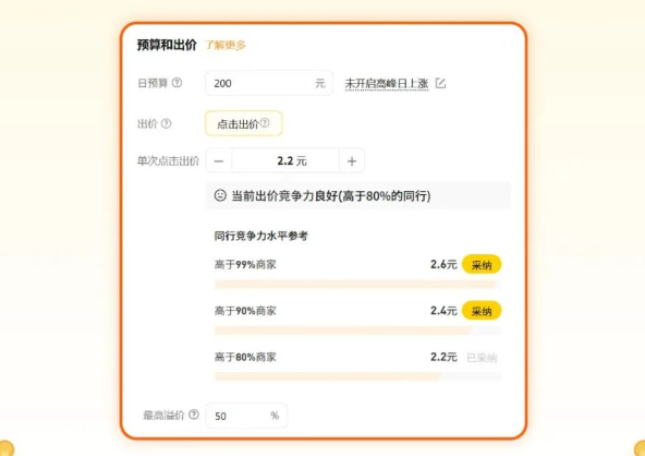美团竞争力出价功能上线