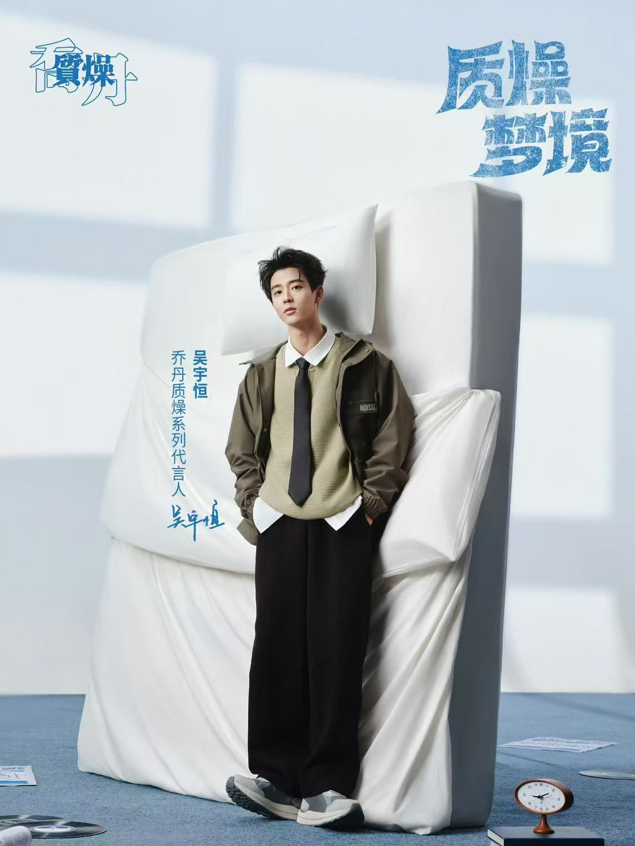 2025年12月2日,中乔体育正式宣布吴宇恒成为旗下「乔丹质燥系列」代言人。品牌强调其“温柔坚定”的调性,与吴宇恒在喧嚣中构筑安静角落的个人特质高度契合,共同探索质燥所代表的简约高级与多元潮流风格。合作预热始于11月26日,品牌通过公众号、视频号发布悬念内容;11月28日双方同步发布官宣视频及海报;12月1日-3日陆续释出同款穿搭及花絮。