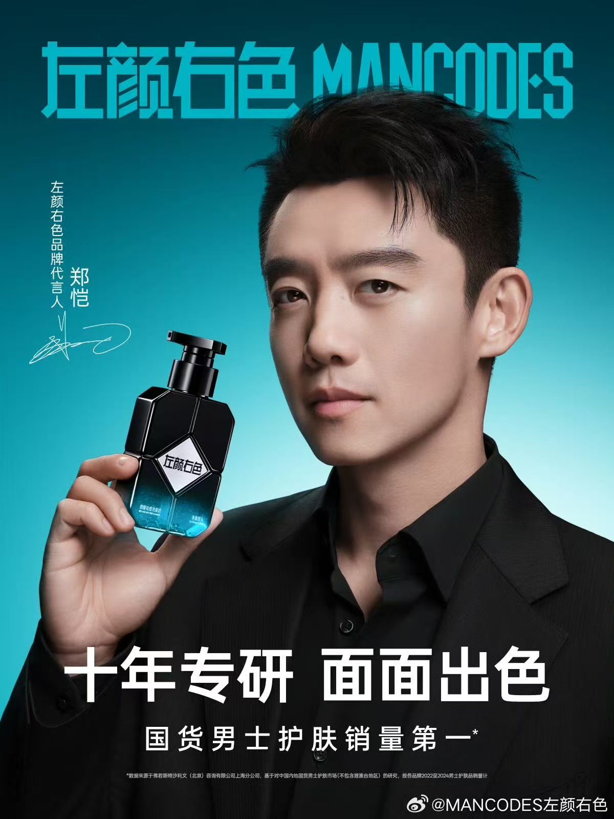 男士护肤品牌左颜右色正式宣布演员郑恺成为品牌代言人。双方以"专注专业,成就面面出色"为合作理念,主打科学高效的男士护肤方案。左颜右色强调其"国货男士护肤销量第一"地位,引用沙利文数据作为权威背书,突出十年专研的专业性,与郑恺"多面角色皆出色"的公众形象深度契合。同步推出"郑恺同款限定周边",包括代言人定制小卡、气囊手机支架及洗漱包,京东平台独家上线"郑恺同款护肤方案",搜索关键词可解锁专属权益。