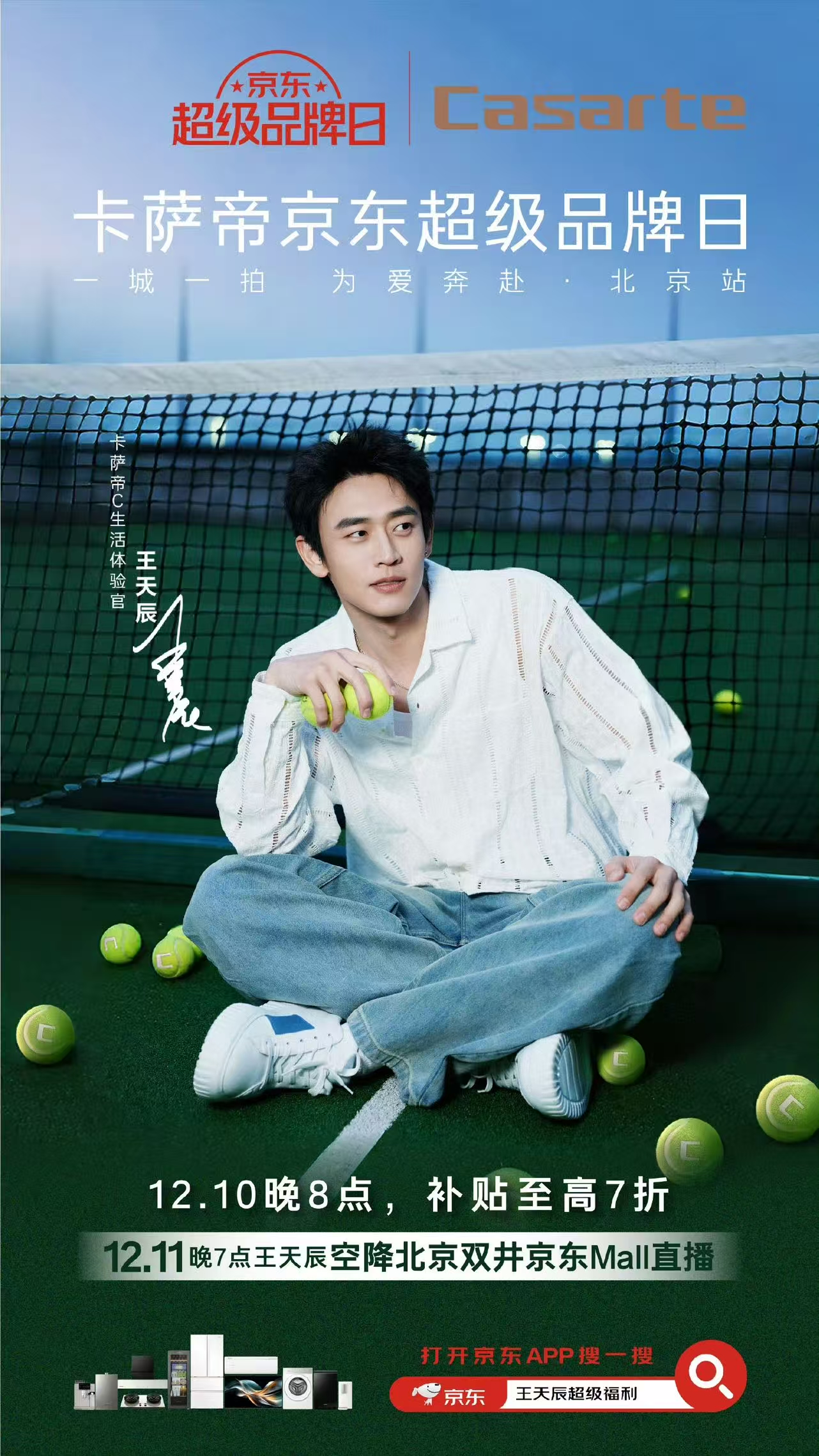王天辰担任卡萨帝C生活体验官,携手开启“一城一拍 为爱奔赴”城市之旅。首站落地北京,融合京韵文化与智慧科技,探索高阶运动生活新范式。12月10日晚8点,卡萨帝京东超级品牌日正式开启,王天辰以体验官身份推广活动,用户可通过京东搜索“王天辰超级福利”获取专属优惠。王天辰自2025年9月起担任卡萨帝岩系生活体验官,此前通过社交媒体分享自然、高品质生活方式,此次“C生活体验官”角色进一步拓展至运动场景。