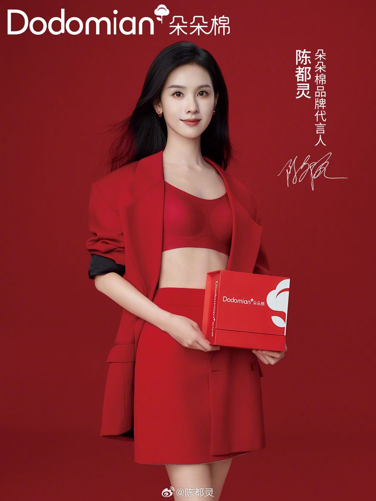 朵朵棉正式官宣陈都灵为品牌代言人,双方携手推出“向内自然舒适,向外自然都灵”主题 campaign。陈都灵出镜演绎多组居家造型,展现清冷灵动与温柔治愈并存的气质,主推“灵运红盒”礼盒及保暖内衣、家居服等系列。消费者购买“陈都灵同款”产品,备注“陈都灵”可计入代言销量,并有机会获赠限定周边如3D立体红卡、蓝卡、吧唧、贴纸等。品牌同步上线“品牌时刻”互动活动,参与关注、转发、发博等任务可抽取陈都灵同款红品礼盒、家居服等福利。